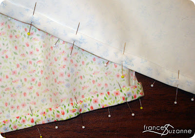 Recently, Emily {suzanne} and I had purchased the Oliver + S bubble dress pattern in hopes of sewing it for “baby girl.” Which is in the works by the way. . .but I’m getting ahead of myself. To make our sacque, we used the skirt portion of the pattern {view b} without the side seam scallops, unlined, and lengthened it by 3″.