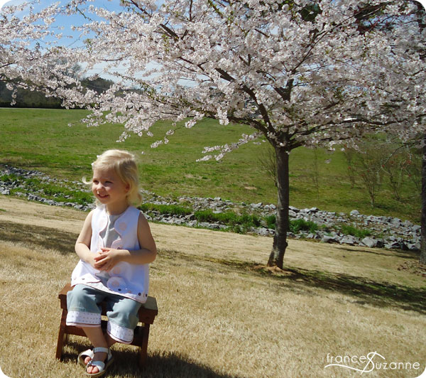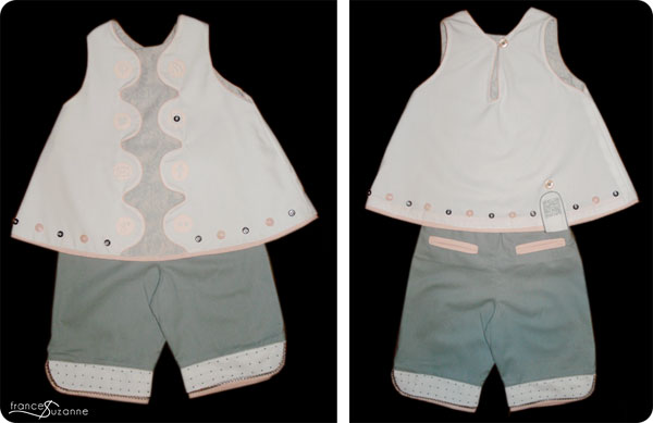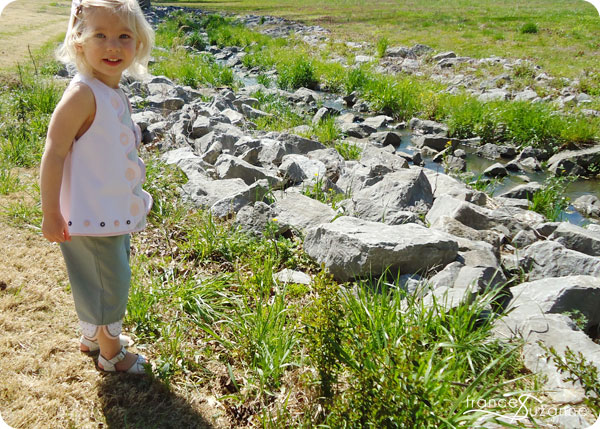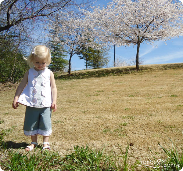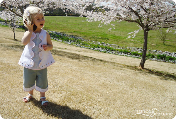 While we’d love to stay in the moment and relish in the fact that it did indeed work…. we must continue on our ‘garment detail explanation.’ On the pants….we began with the Children’s Corner Charlotte capris. And, although Children’s Corner patterns fit EA spot-on, sometimes the creativity on the pattern cover is lacking. So, let the details begin…shall we?