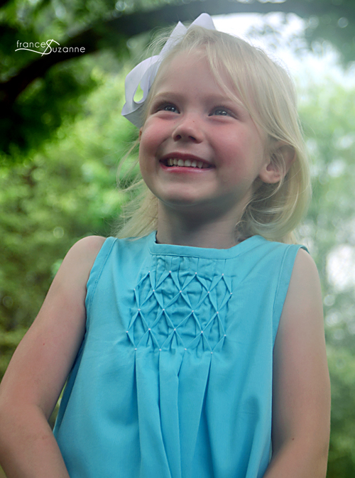 The Children’s Corner, Lillian is such a good pattern to alter / modify. We have enjoyed playing around with this pattern on multiple occasions {adding a ruffle collar and an inverted pleat}, and tackled it once again with a little honeycomb smocking.