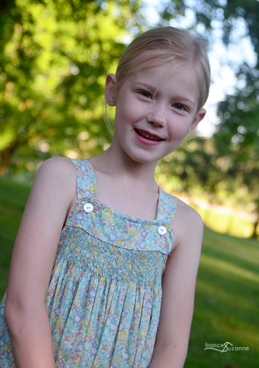 We sewed CL a Katina Dress in a size 6. Well, we actually took a “shortcut” with this creation – having the dress constructed prior to smocking it.