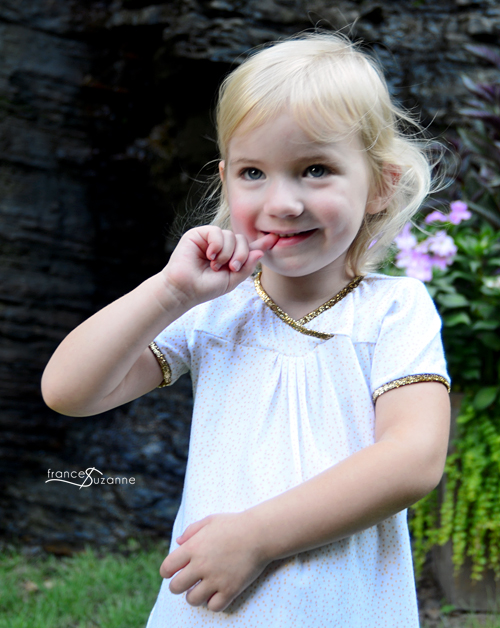 We thought about eliminating the sleeve trim, but decided she would then fixate on the neckline.